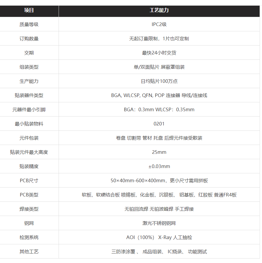 漢通電子配備7條全自動高速SMT貼片生產(chǎn)線、全自動上板機、全自動錫膏印刷機、SPI檢測儀、多溫區(qū)回流焊、AOI光學(xué)檢測設(shè)備、X-Ray射線檢查機、烘烤機、鋼網(wǎng)清洗機等,長期為國內(nèi)外客戶提供加工制造服務(wù)。公司通過了ISO9001:2015質(zhì)量管理體系、GJB9001B-2009國軍標體系認證以及正在進行IATF16949汽車電子認證、ISO13485醫(yī)療器械管理體系認證。